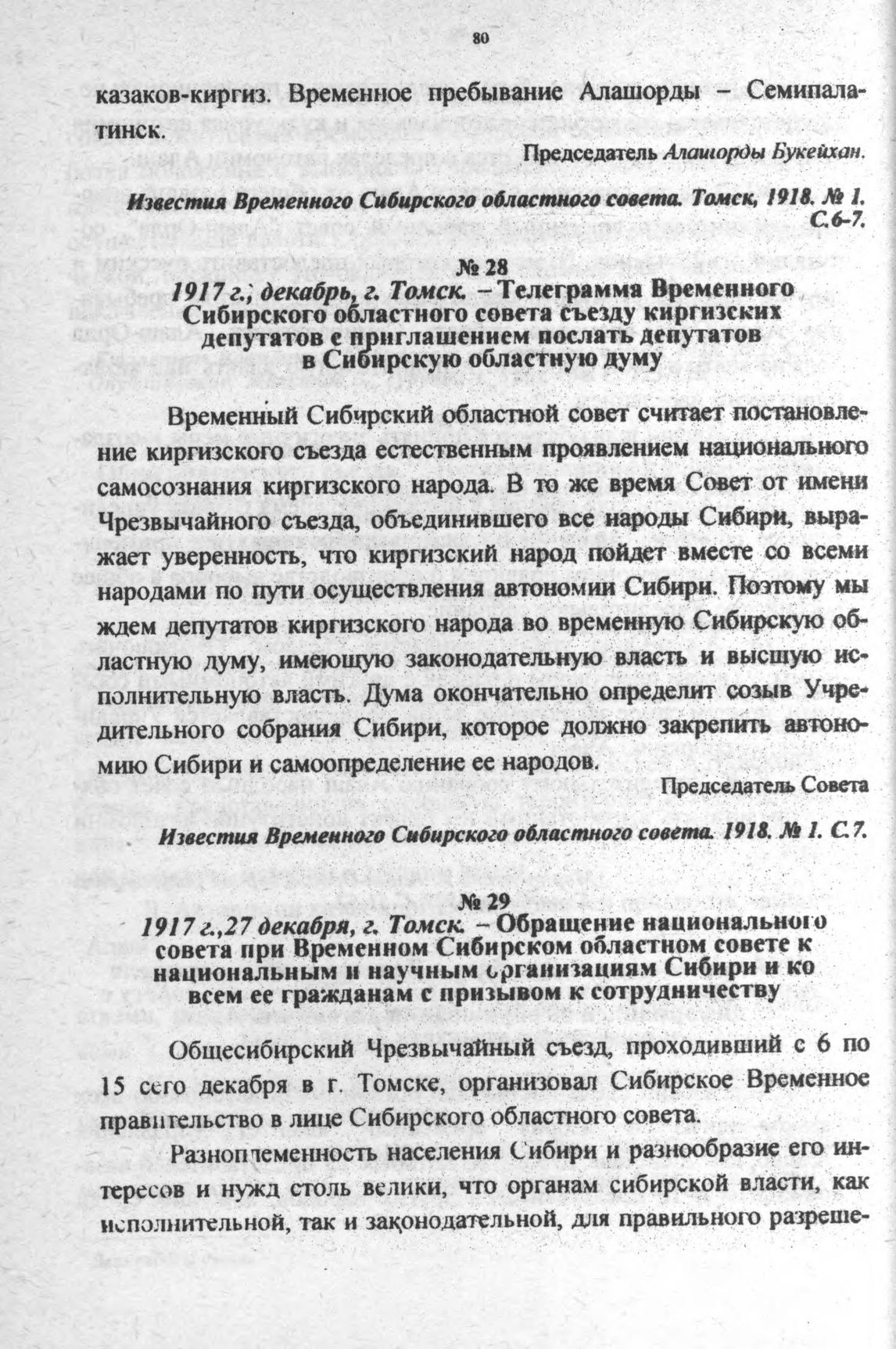 Обращение национального совета при Временном Сибирском областном совете к национальным и научным организациям Сибири и ко всем ее гражданам с призывом к сотрудничеству. 1917 г., 27 декабря, г. Томск // Известия Временного Сибирского областного совета. 1918. № 1. С. 4-5.