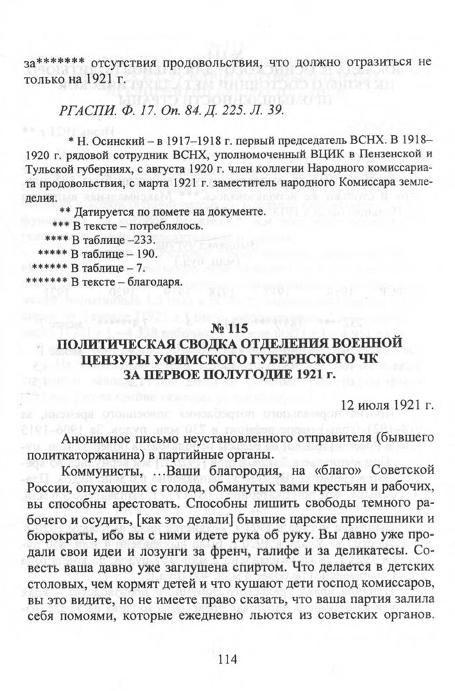 Политическая сводка отделения военной цензуры Уфимского губернского ЧК за первое полугодие 1921 г. 12 июля 1921 г. // ЦГИА РБ. Ф. 80. Оп. 1. Д. 42. Л. 22-22 об.