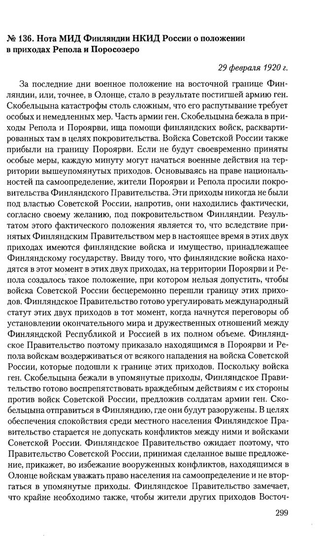 Нота МИД Финляндии НКИД России о положении в приходах Репола и Поросозеро . 29 февраля 1920 г. // Опубл.: ДВП. Т. 2. С. 394-395.