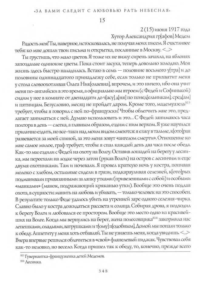 Письмо В.Ф. Надеждина Е.С. Борисоглебской. 2 (15) июня 1917 года, Хутор Александрия гр[афов] Медем