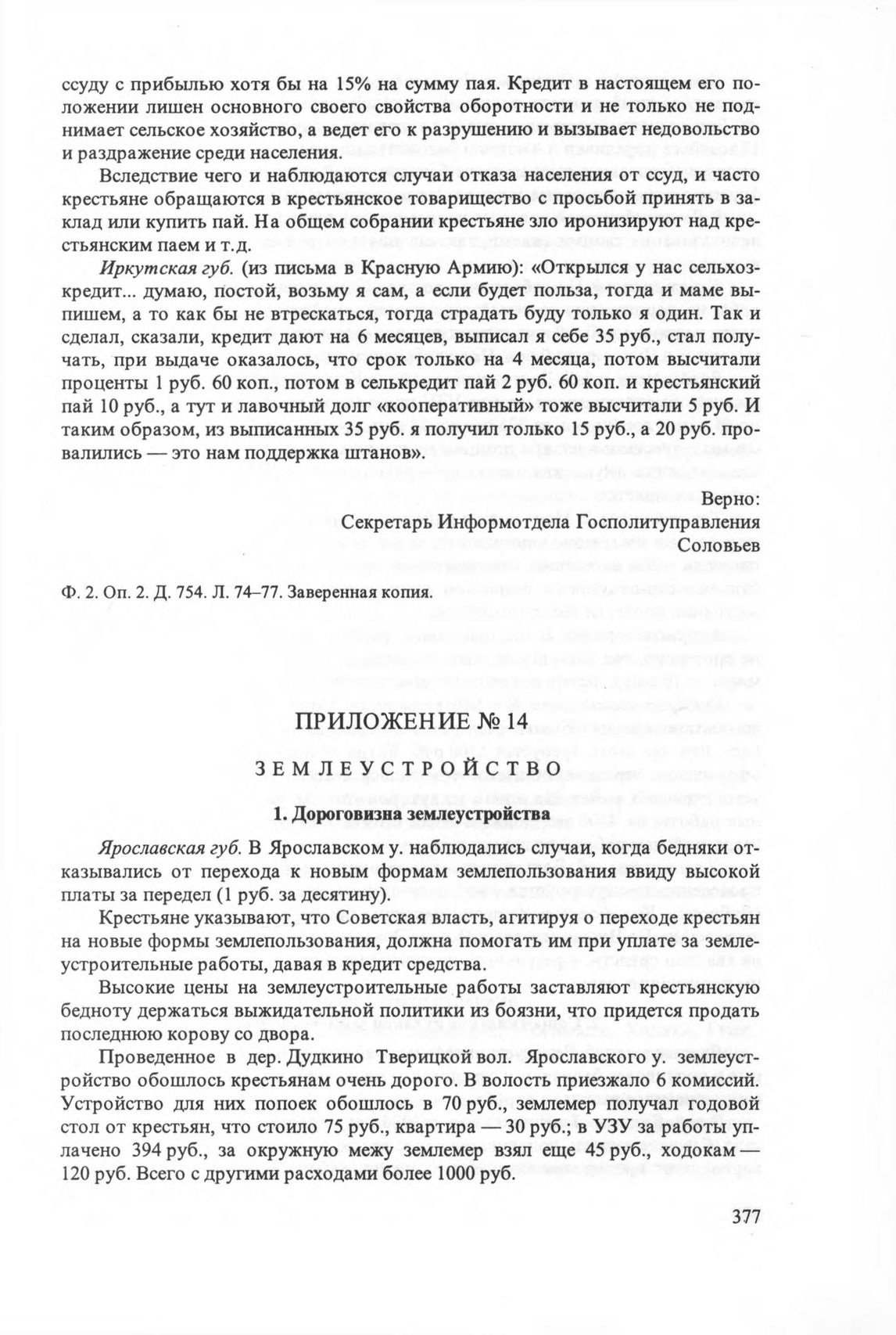 Приложение № 14. Землеустройство // ЦА ФСБ РФ. Ф. 2. Оп. 2. Д. 754. Л. 78-82. Заверенная копия.
