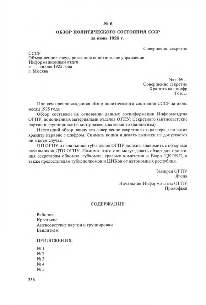 Обзор политического состояния СССР за июнь 1925 г. // ЦА ФСБ РФ. Ф. 2. Оп. 23. Д. 1047. Л. 258-300.
