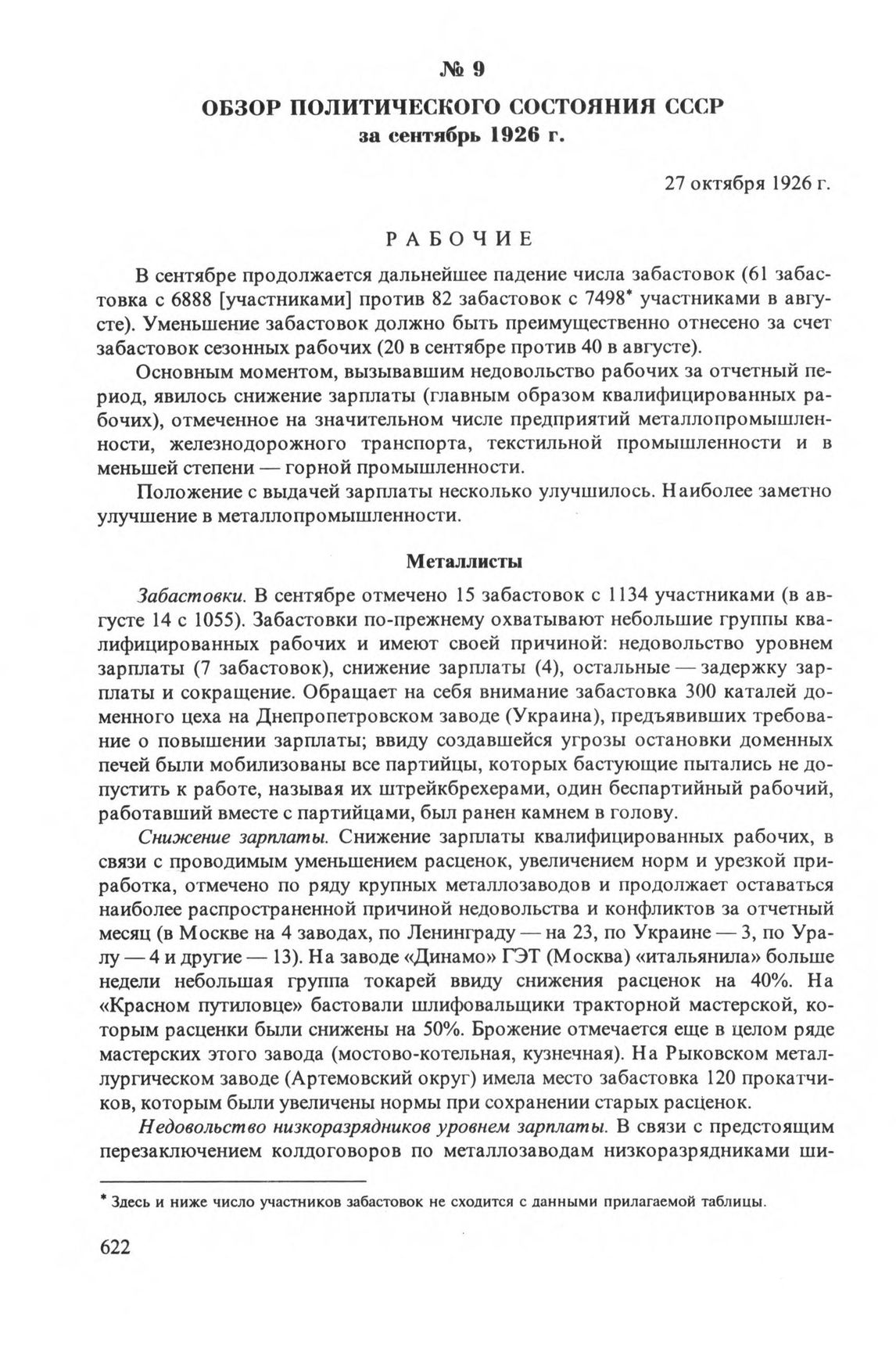 Обзор политического состояния СССР за сентябрь. 27 октября 1926 г. // ЦА ФСБ РФ. Ф. 2. Оп. 4. Д. 439. Л. 258-293.