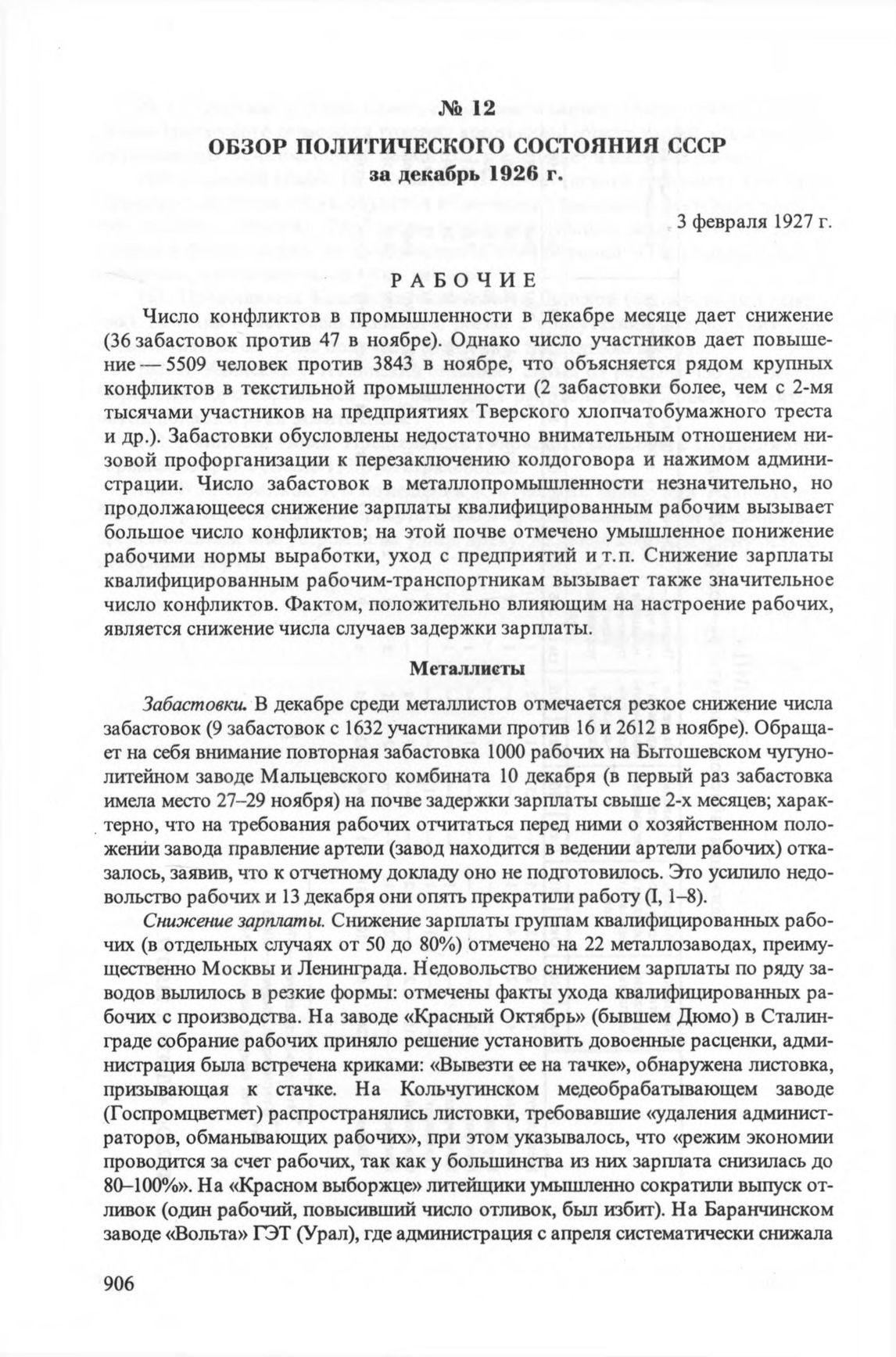 Обзор политического состояния СССР за декабрь. 3 февраля 1927 г. // ЦА ФСБ РФ. Ф. 2. Оп. 4. Д. 439. Л. 378-432.