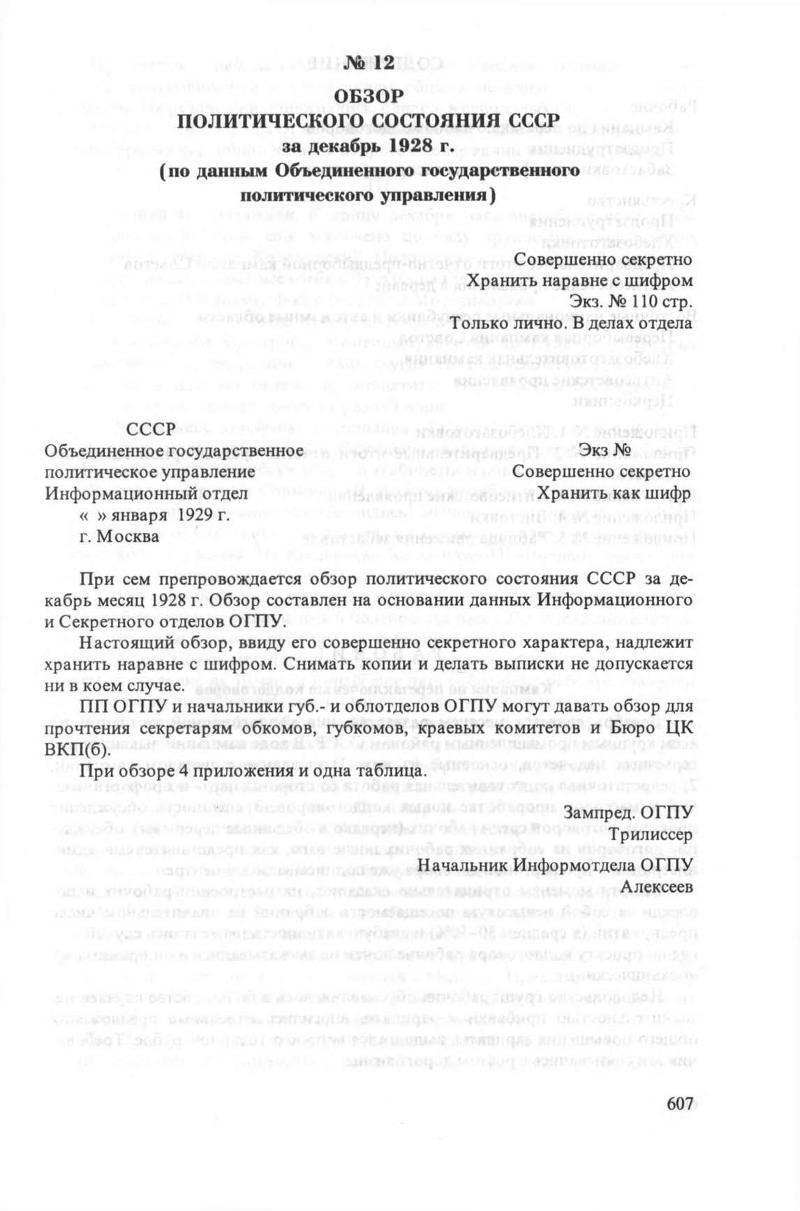Обзор политического состояния СССР за декабрь 1928 г. (по данным Объединенного государственного политического управления) // ЦА ФСБ РФ. Ф. 2. Оп. 6. Д. 580. Л. 644-718; Д. 584. Л. 58-58 об.