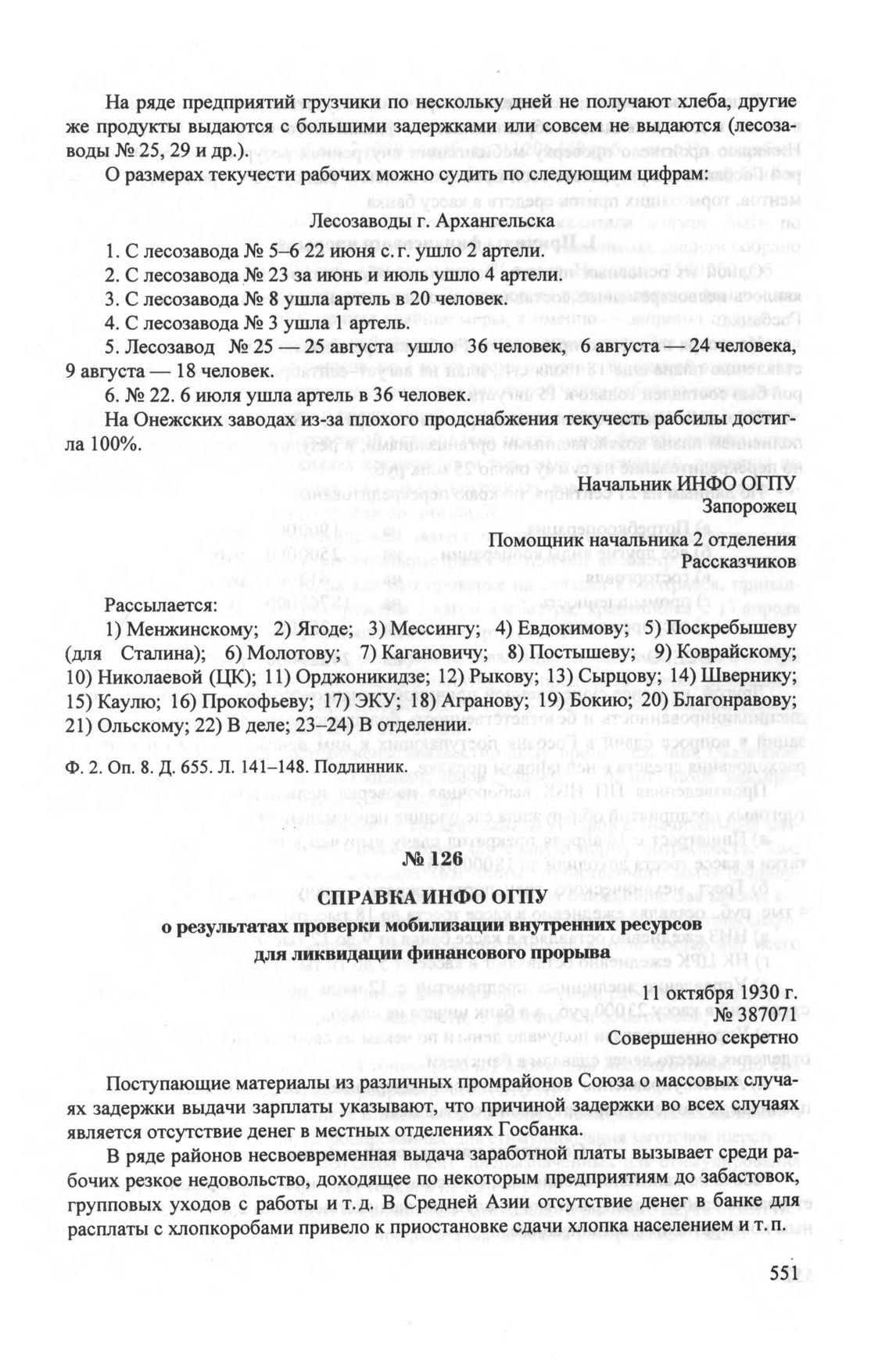Справка ИНФО ОГПУ о результатах проверки мобилизации внутренних ресурсов для ликвидации финансового прорыва. 11 октября 1930 г. // ЦА ФСБ РФ. Ф. 2. Оп. 8. Д. 660. Л. 764-769. Подлинник.
