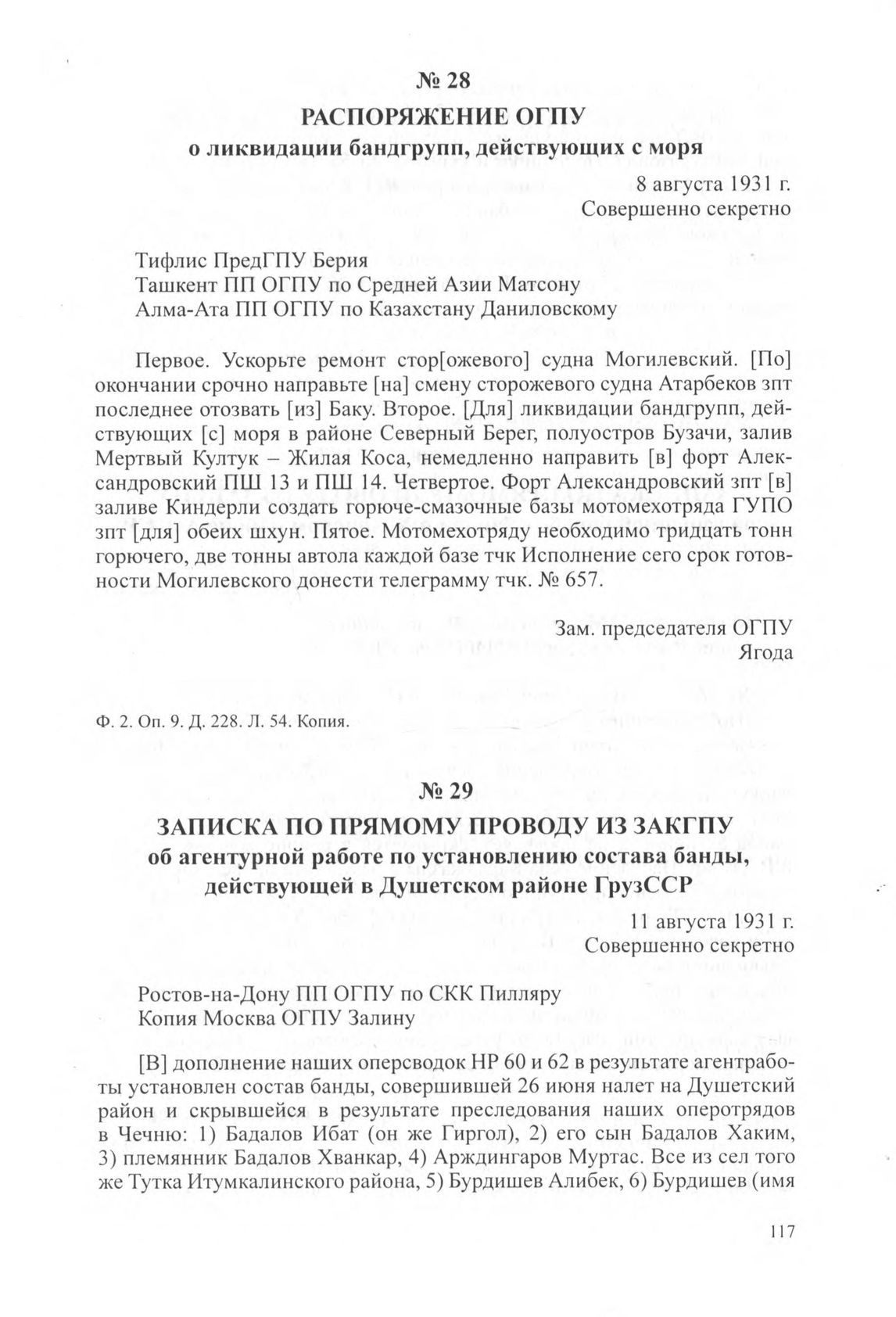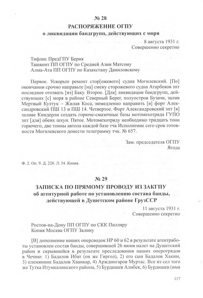 Распоряжение ОГПУ о ликвидации бандгрупп, действующих с моря. 8 августа 1931 г. // ЦА ФСБ РФ. Ф. 2. Оп. 9. Д. 228. Л. 54. Копия.
