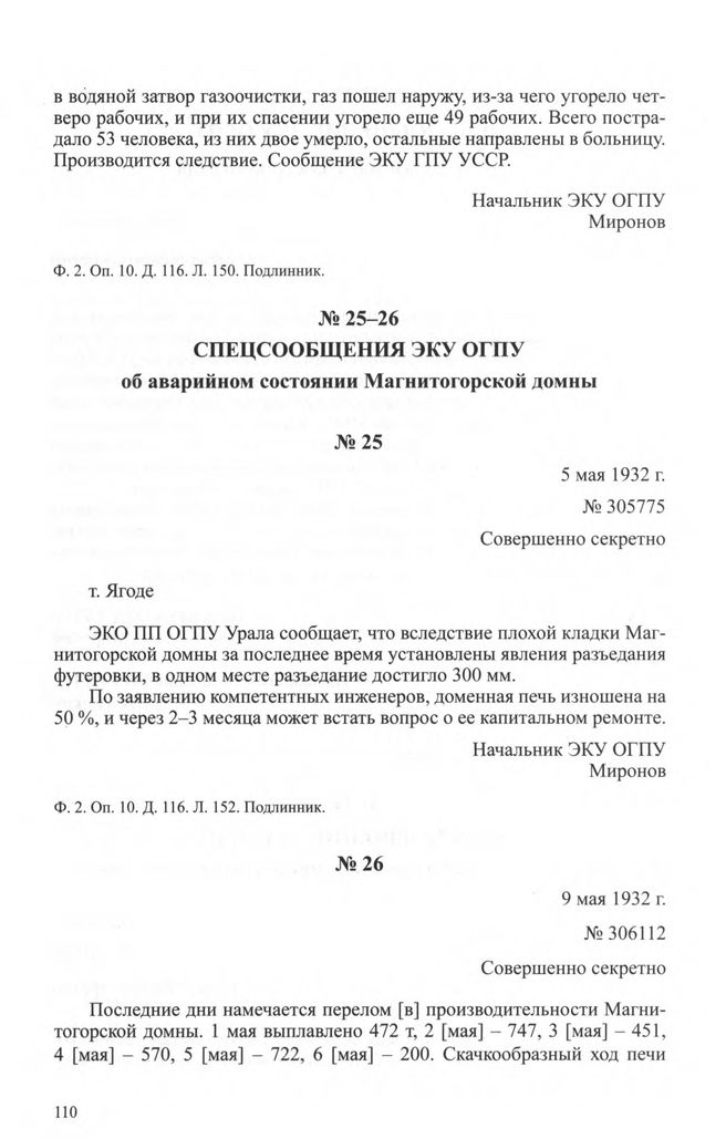 Спецсообщения ЭКУ ОГПУ об аварийном состоянии Магнитогорской домны. 5-9 мая 1932 г. 9 мая 1932 г.