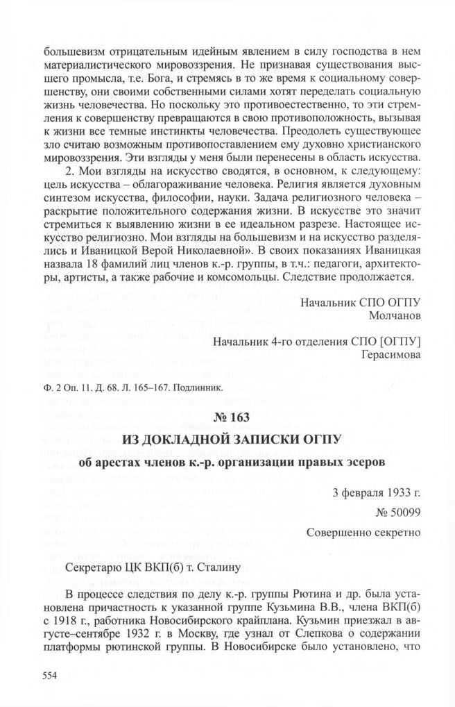 Из докладной записки ОГПУ об арестах членов к.-р. организации правых эсеров. 3 февраля 1933 г. // ЦА ФСБ РФ. Ф. 2. Оп. 11. Д. 6. Л. 215-217. Копия.