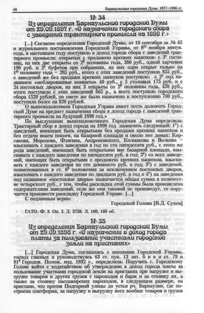 Из определения Барнаульской городской Думы от 29.09.1898 г. «О назначении в доход города платы за пользование участками городской земли на пристанях» // ГАТО. Ф. 3. Оп. 2. Д. 4210. Л. 190-192.