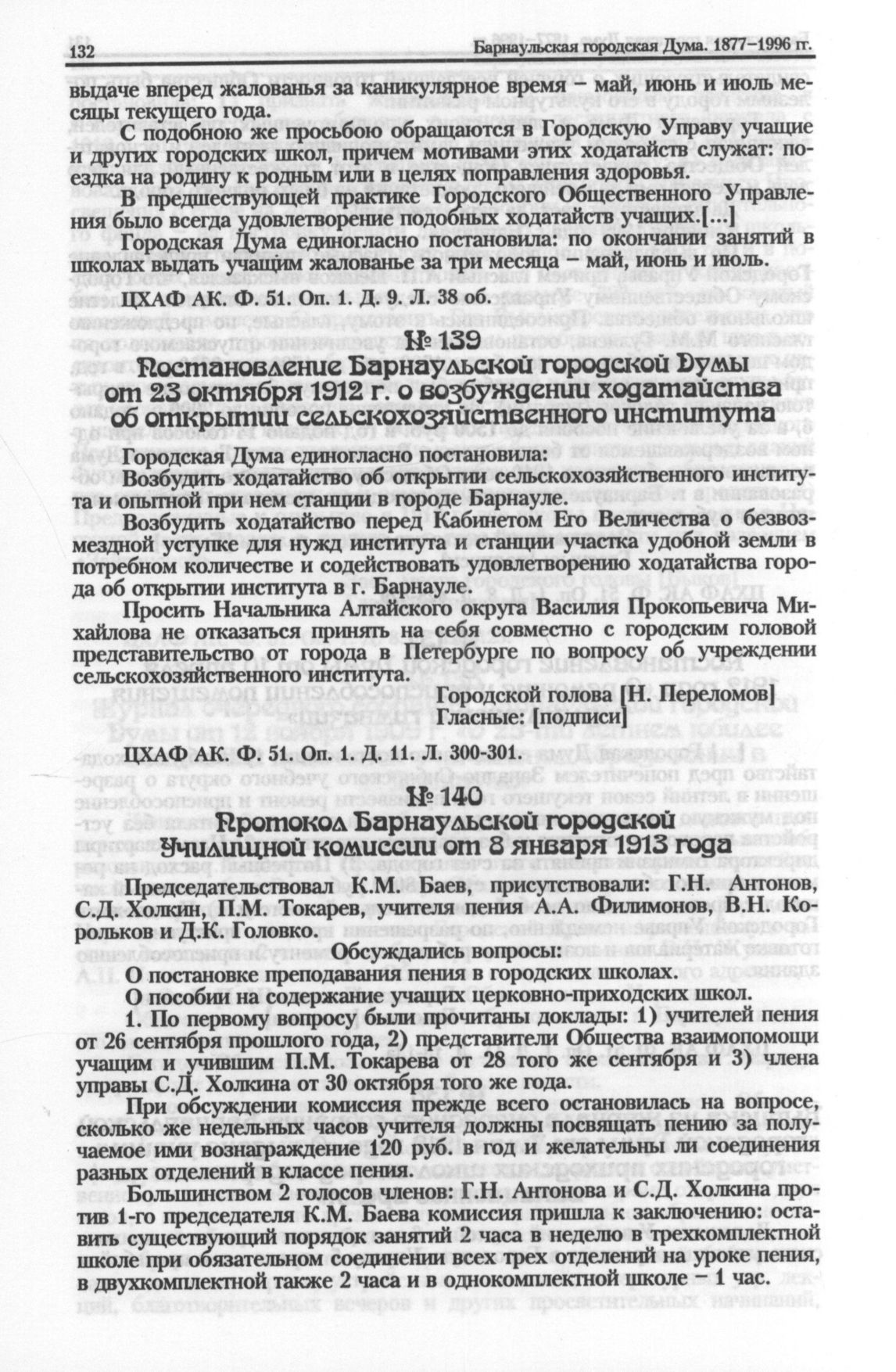 Постановление Барнаульской городской Думы от 23 октября 1912 г. о возбуждении ходатайства об открытии сельскохозяйственного института // ЦХАФ АК. Ф. 51. Oп. 1. Д. 11. Л. 300-301.
