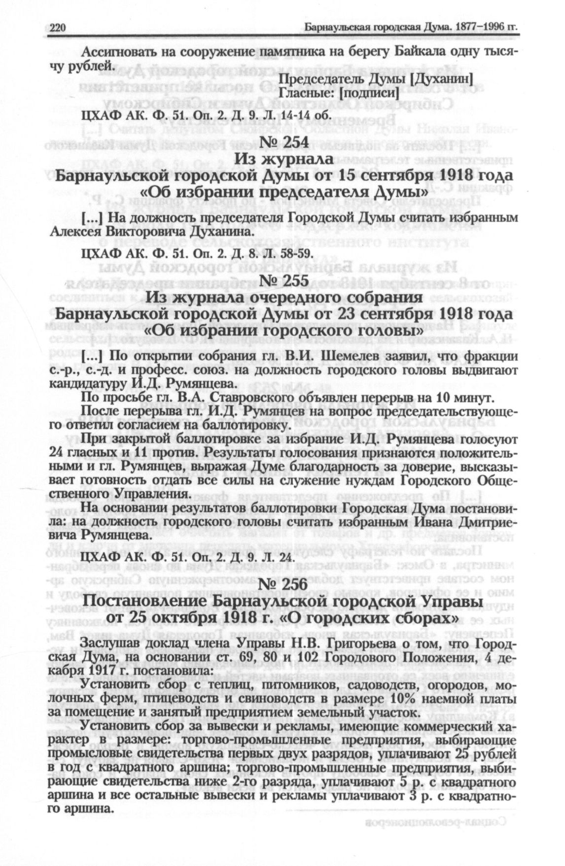 Из журнала Барнаульской городской Думы от 15 сентября 1918 года «Об избрании председателя Думы»