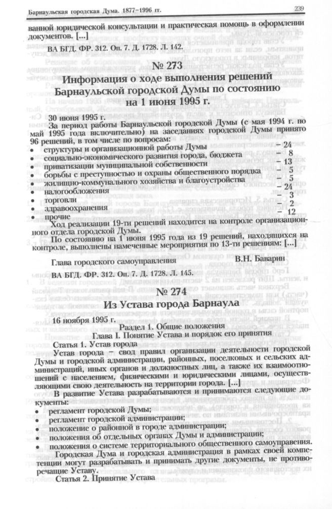 Информация о ходе выполнения решений Барнаульской городской Думы по состоянию на 1 июня 1995 г. // ВА БГД. ФР. 312. Оп. 7. Д. 1728. Л. 145.