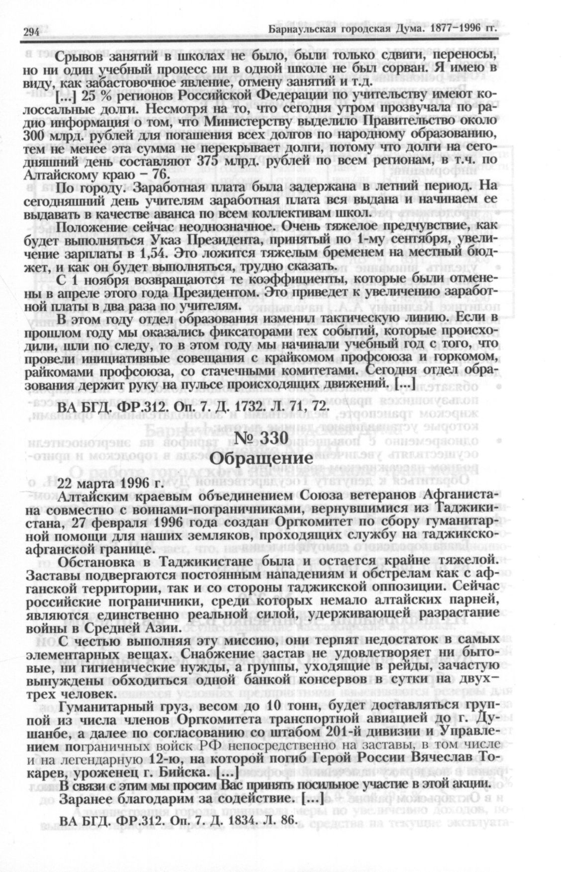 Обращение. 22 марта 1996 г. // ВА БГД. ФР. 312. Оп. 7. Д. 1834. Л. 86.