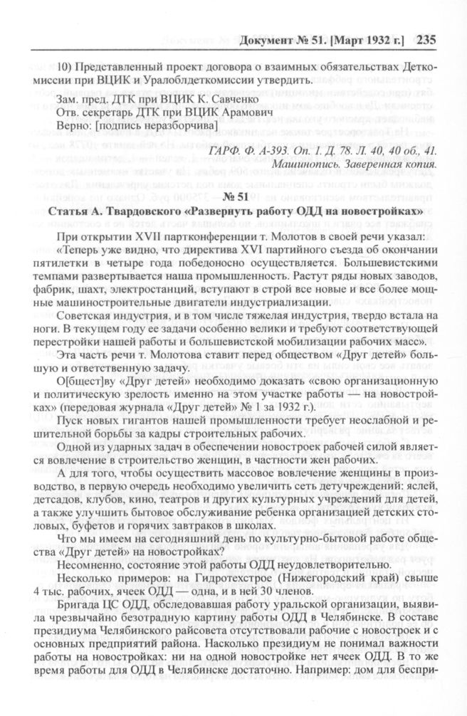Статья А. Твардовского «Развернуть работу ОДД на новостройках» // Друг детей. 1932. № 3. С. 9-10.