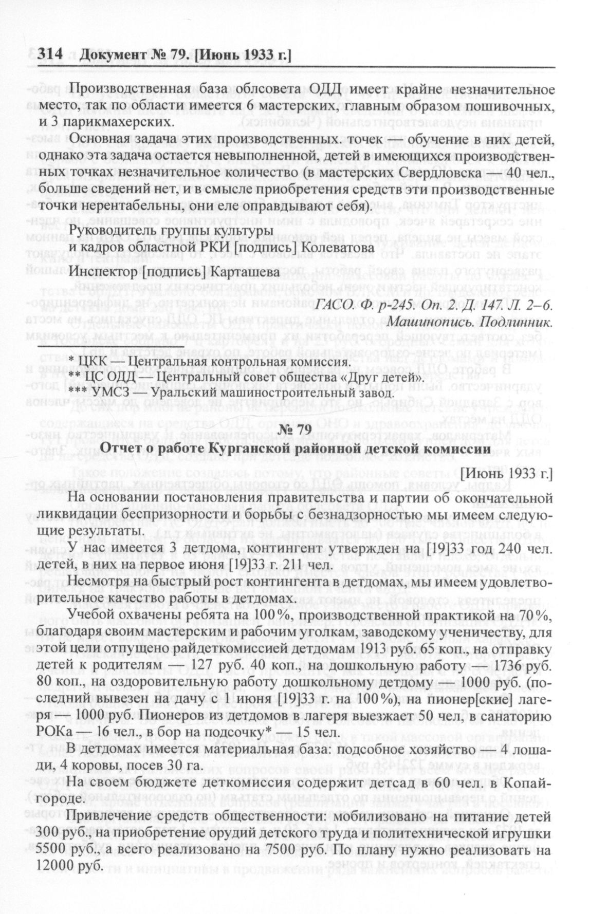 Отчет о работе Курганской районной детской комиссии. [Июнь 1933 г.] // ГАСО. Ф. р-321. Oп. 1. Д. 8. Л. 2. Машинопись. Подлинник.