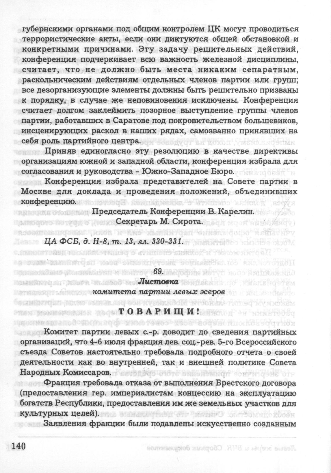 Листовка комитета партии левых эсеров // ЦА ФСБ, д. Н-8, т. 13, л. 331а.