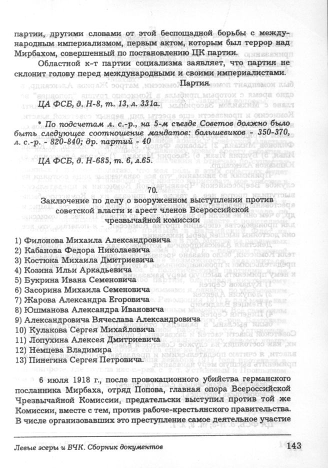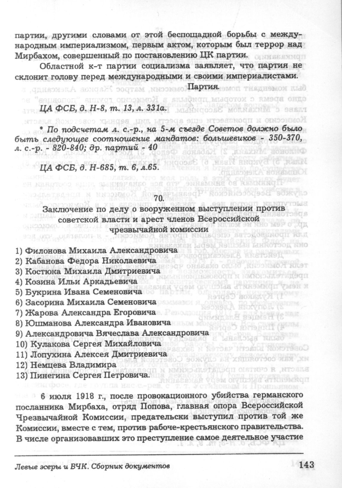 Заключение по делу о вооруженном выступлении против советской власти и арест членов Всероссийской чрезвычайной комиссии // ЦА ФСБ, д. Н-8, т. 9, л. 1.