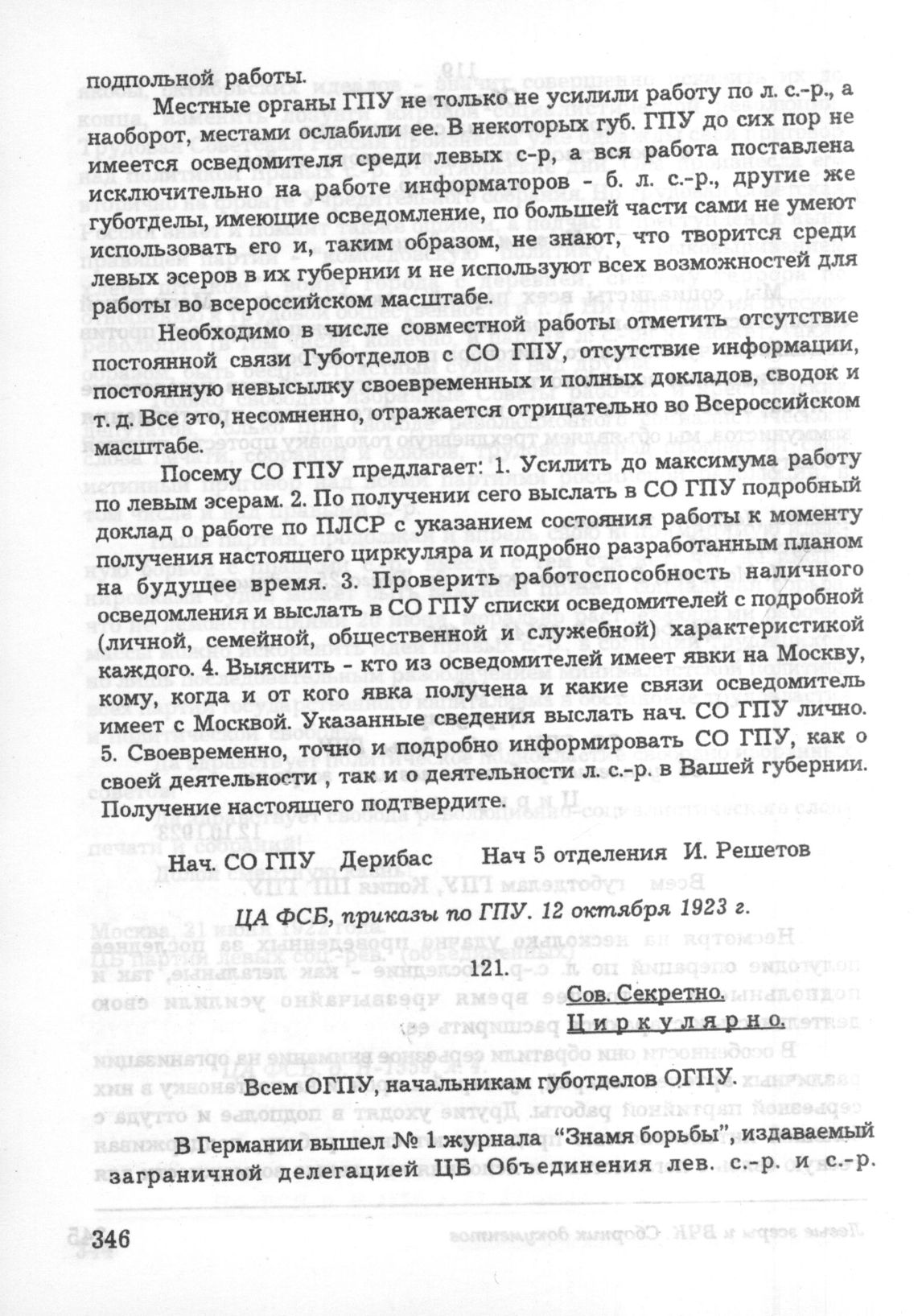 Циркуляр СО ГПУ о журале «Знамя борьбы». 31 марта 1924 г. // ЦА ФСБ, приказы ОГПУ.
