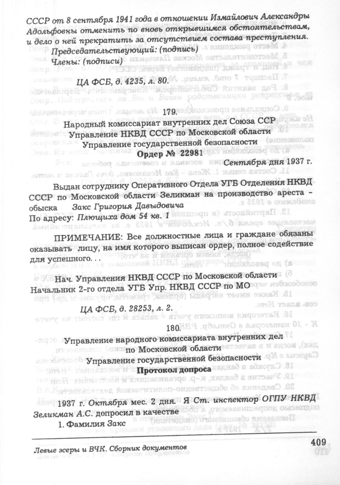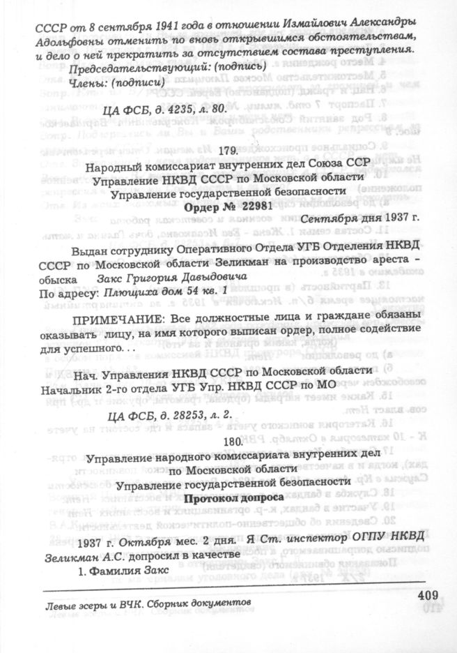 Протокол допроса Закс Григория Давыдовича. 2 октября 1937 г. // ЦА ФСБ, д. 28253, л. 6-7.