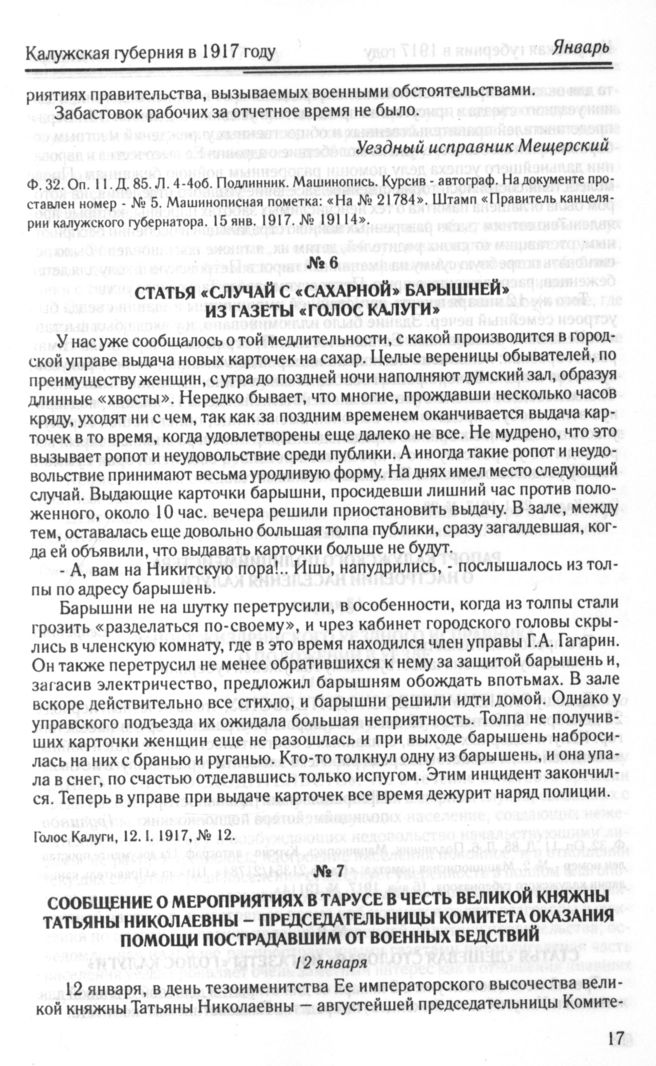 Статья «Случай с «сахарной» барышней» из газеты «Голос Калуги» // Голос Калуги, 12. I. 1917, № 12.