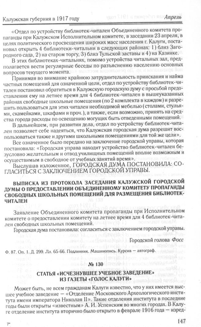 Статья «Исчезнувшее учебное заведение» из газеты «Голос Калуги» // Голос Калуги, 29.IV.1917, № 112.