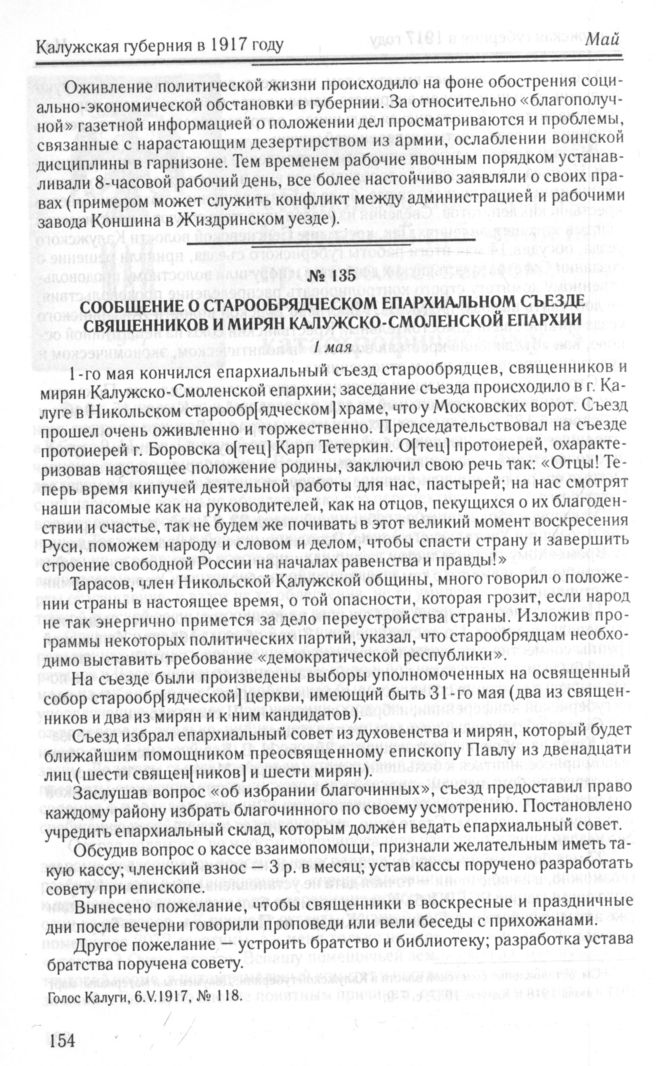 Сообщение о Старообрядческом епархиальном съезде священников и мирян Калужско-Смоленской епархии. 1 мая // Голос Калуги, 6.V.1917, № 118.