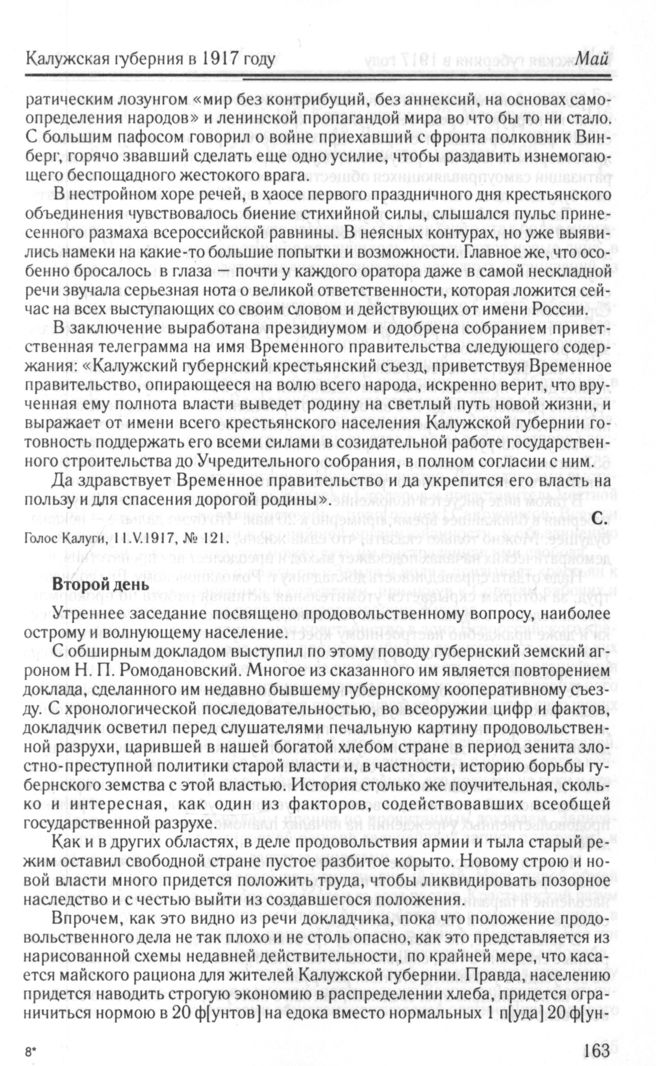 Газетный отчет о работе Губернского крестьянского съезда. 9-11 мая. Второй день // Голос Калуги, 13.V.1917, № 122.