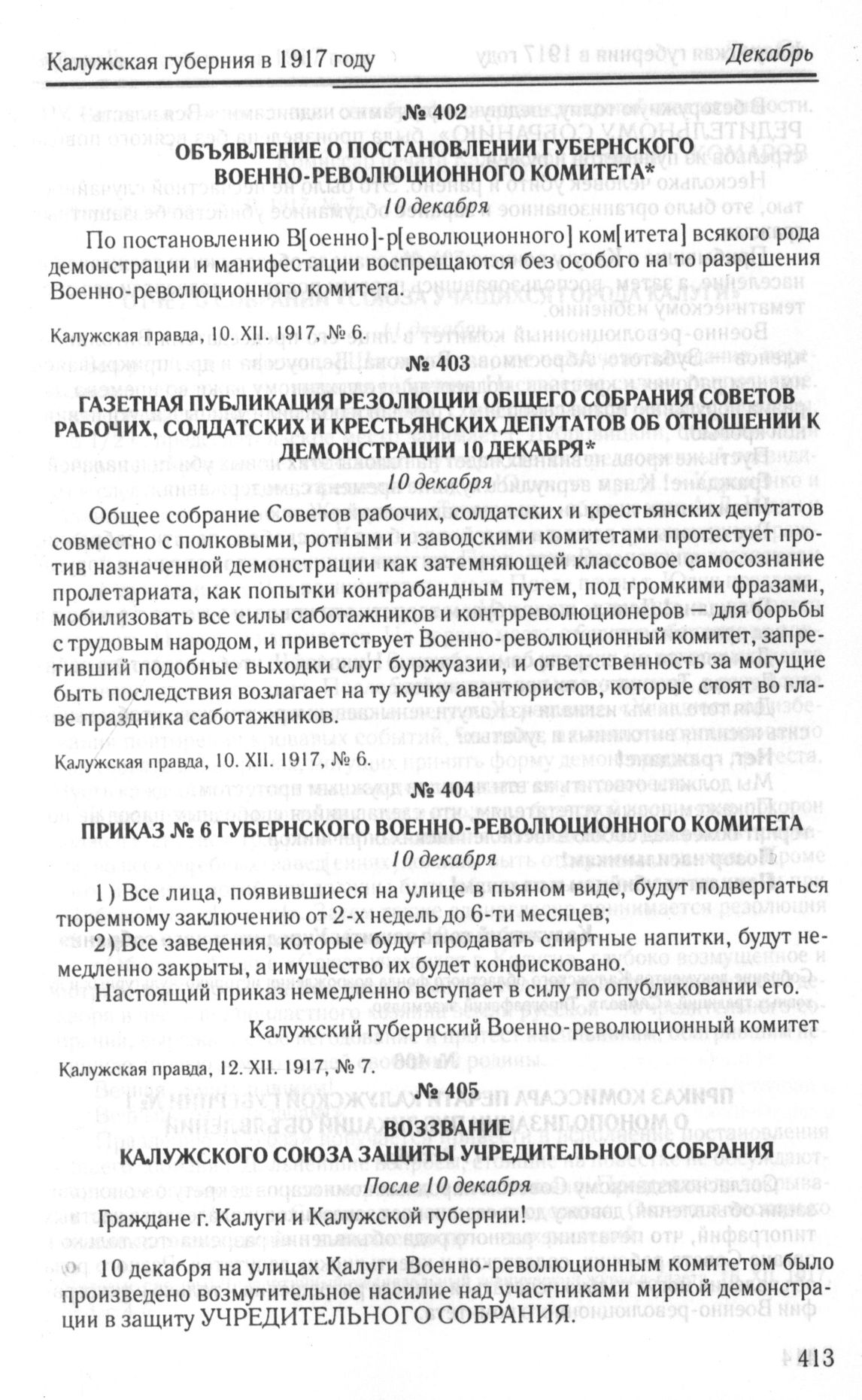 Приказ № 6 губернского Военно-революционного Комитета. 10 декабря // Калужская правда, 12.XII.1917, № 7.