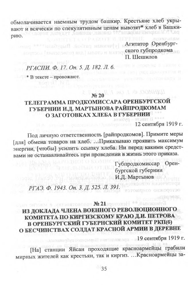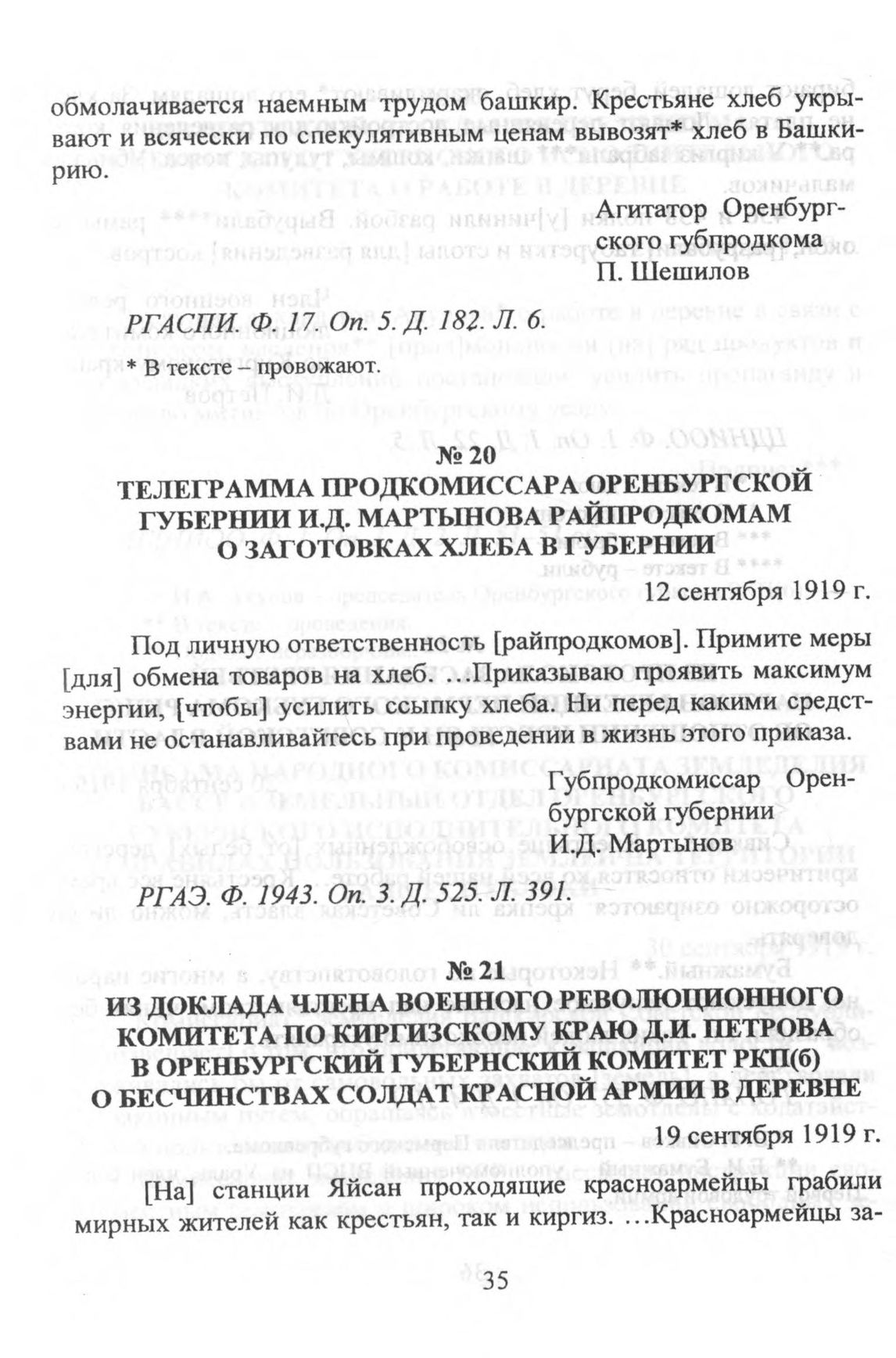 Телеграмма продкомиссара Оренбургской губернии И.Д. Мартынова райпродкомам о заготовках хлеба в губернии. 12 сентября 1919 г. // РГАЭ. Ф. 1943. Oп. 3. Д. 525. Л. 391.