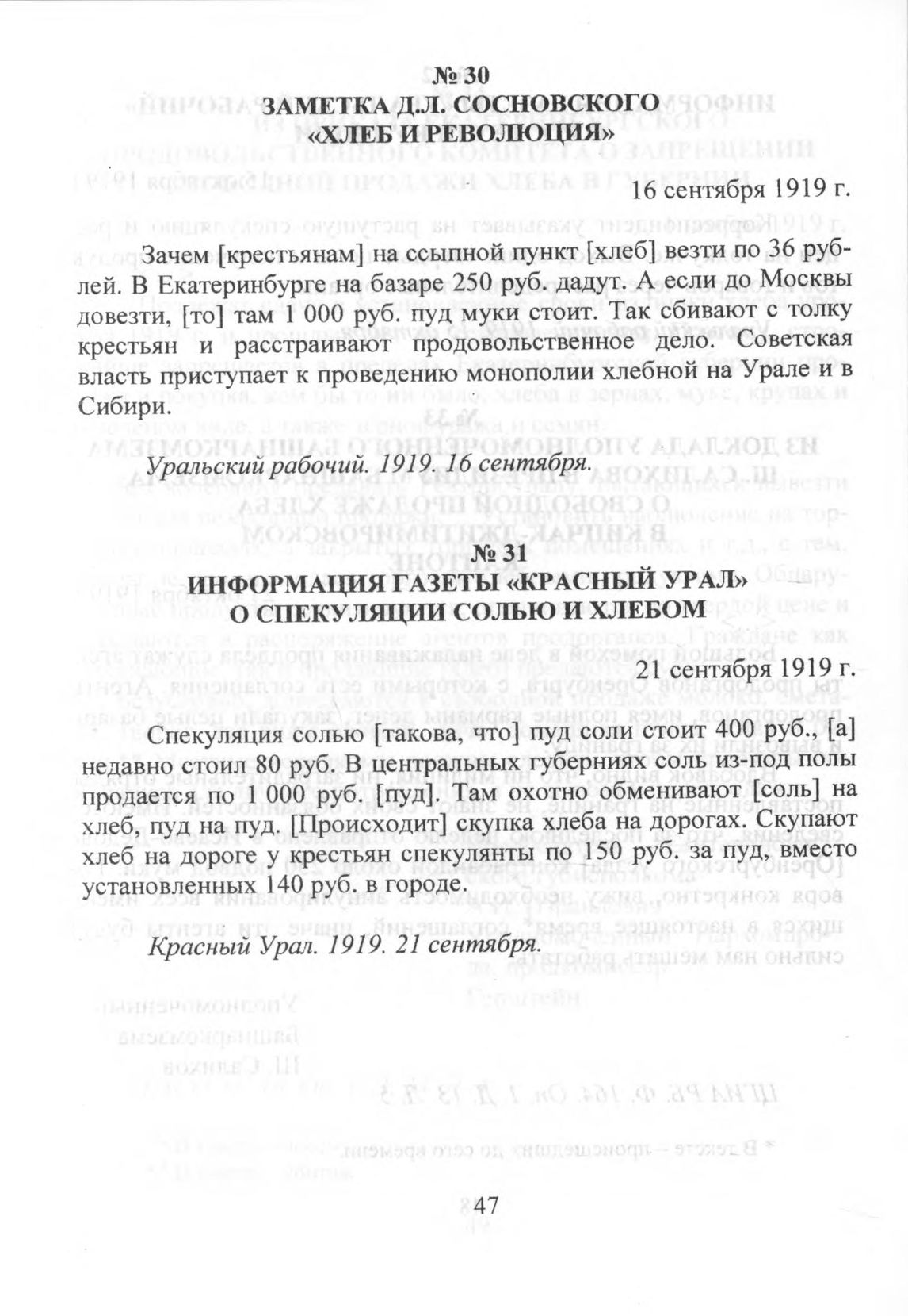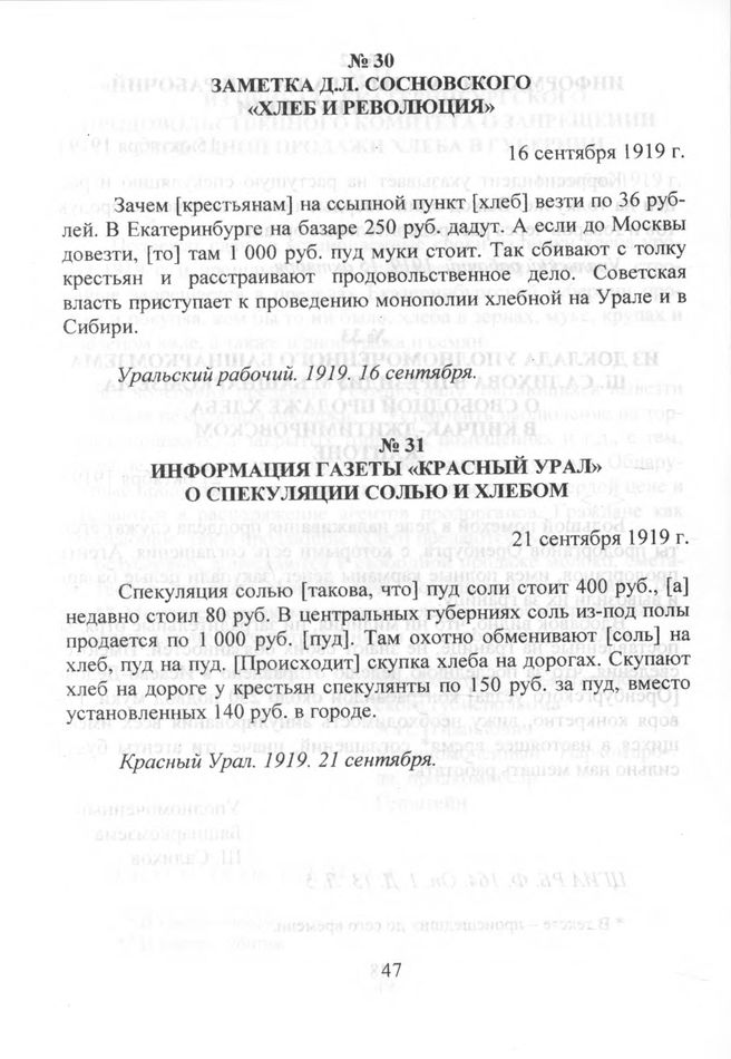 Информация газеты «Красный Урал» о спекуляции солью и хлебом. 21 сентября 1919 г. // Красный Урал. 1919. 21 сентября.