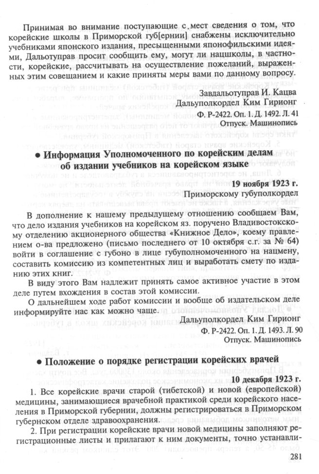 Положение о порядке регистрации корейских врачей. 10 декабря 1923 г. // РГИА ДВ. Ф. Р-2422. Оп. 1.Д. 1493. Л. 85. Копия. Машинопись.
