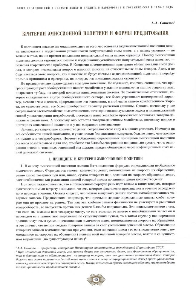 Соколов А.А. Критерии эмиссионной политики и формы кредитования // РГАЭ, ф. 7733, оп. 6, д. 783, л. 133—147.