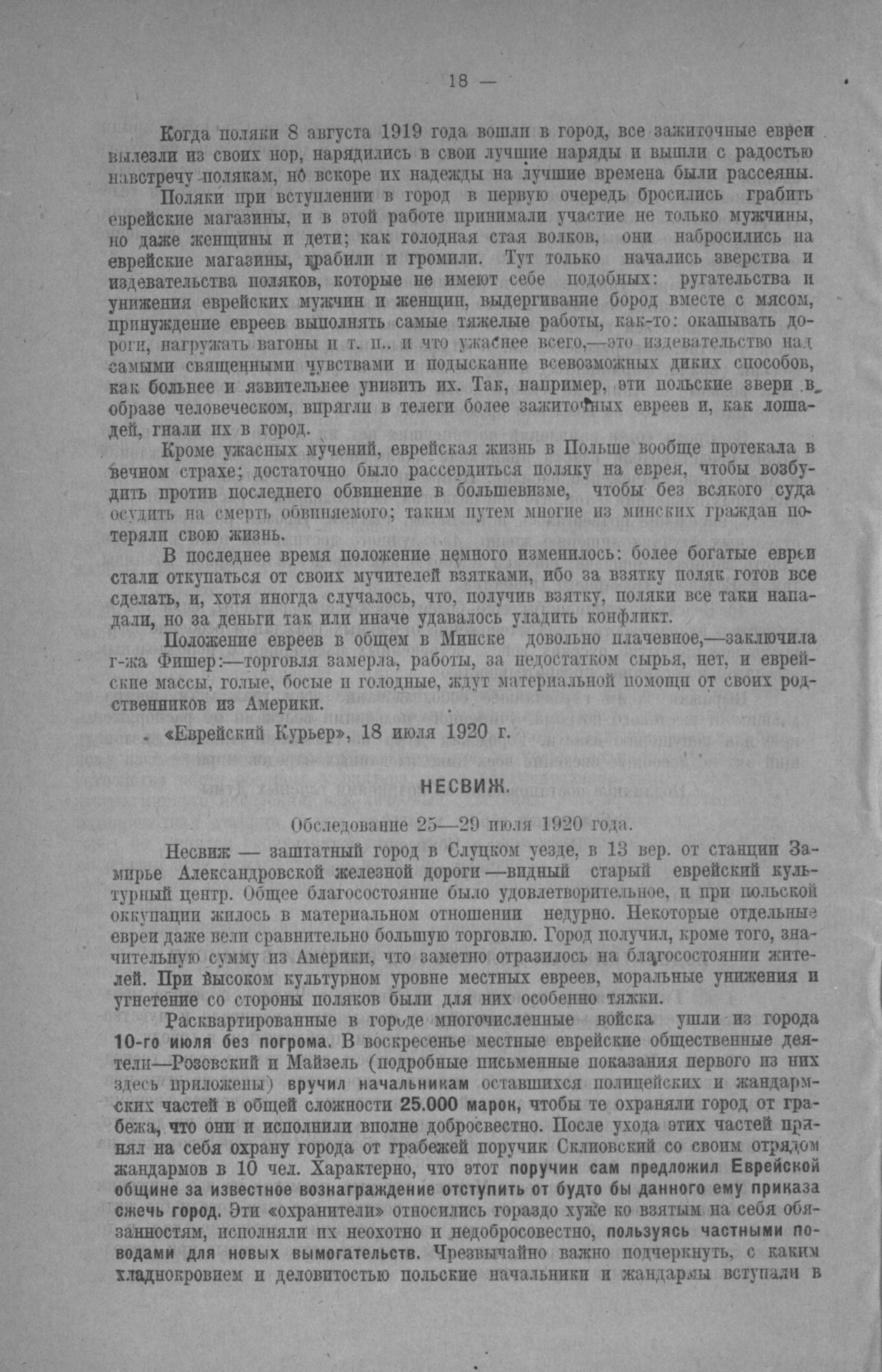 Несвиж. Обследование и показания 25—29 июля 1920 года