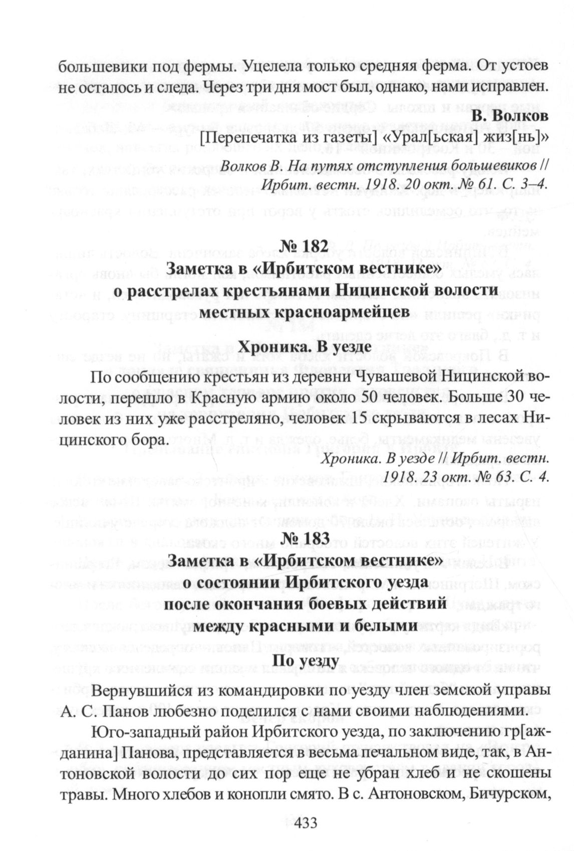 Ф. Д. По уезду // Ирбит, вести. 1918. 23 окт. № 63. С. 4.