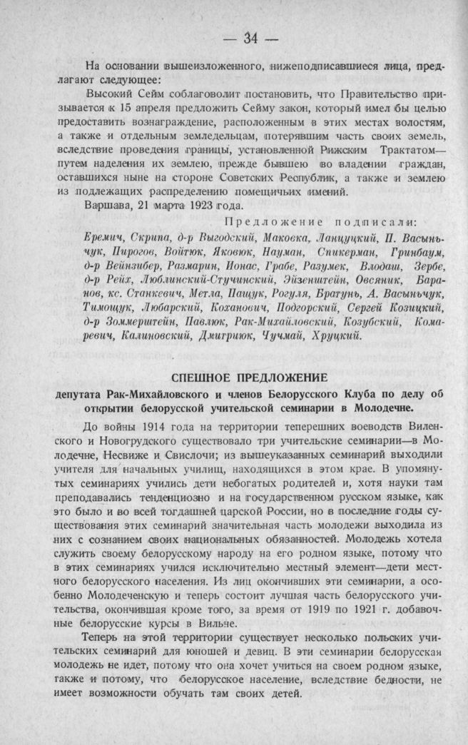 Спешное предложение депутата Рак-Михайловского и членов Белорусского Клуба по делу об открытии белорусской учительской семинарии в Молодечне