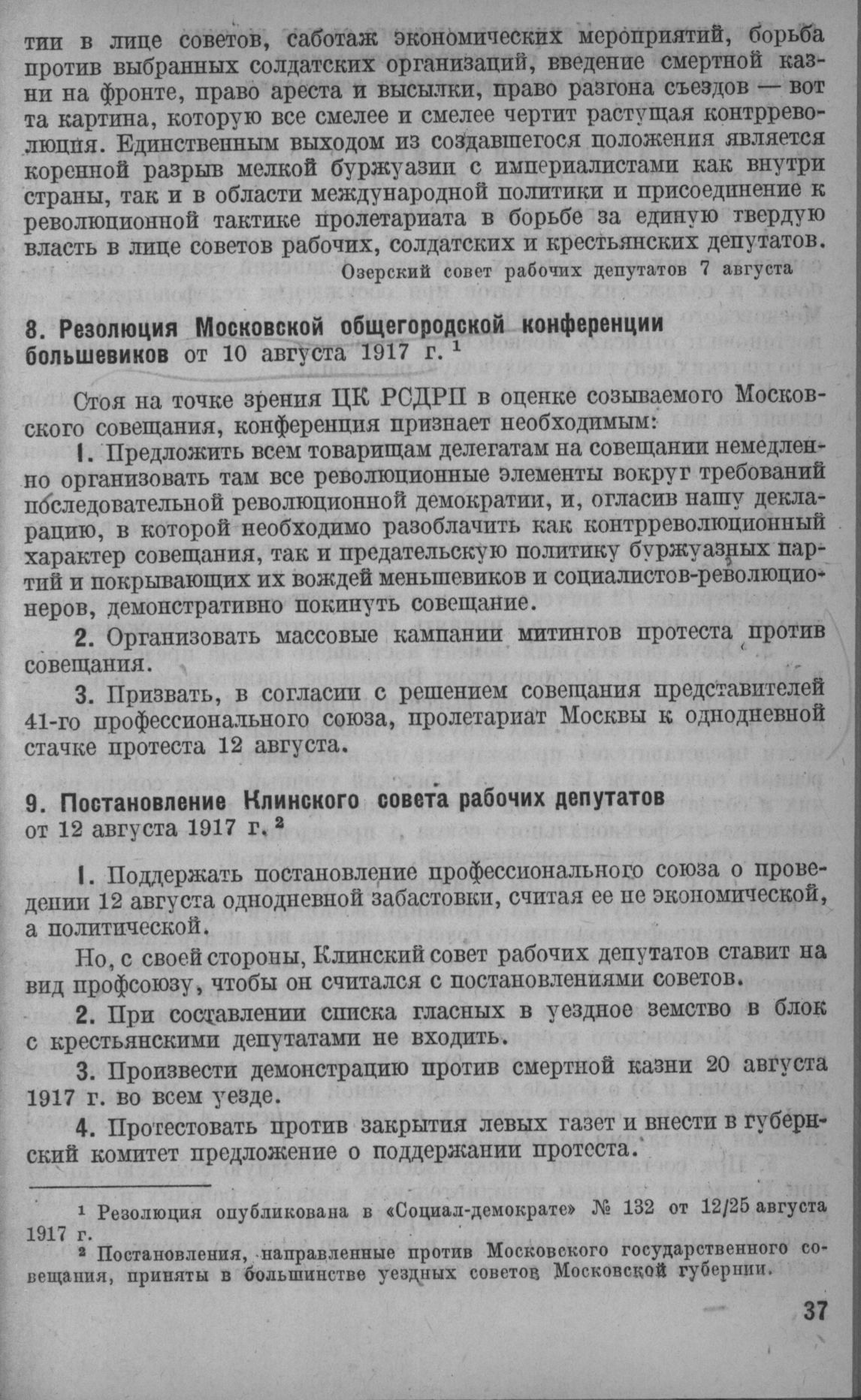 Постановление Клинского совета рабочих депутатов от 12 августа 1917 г.