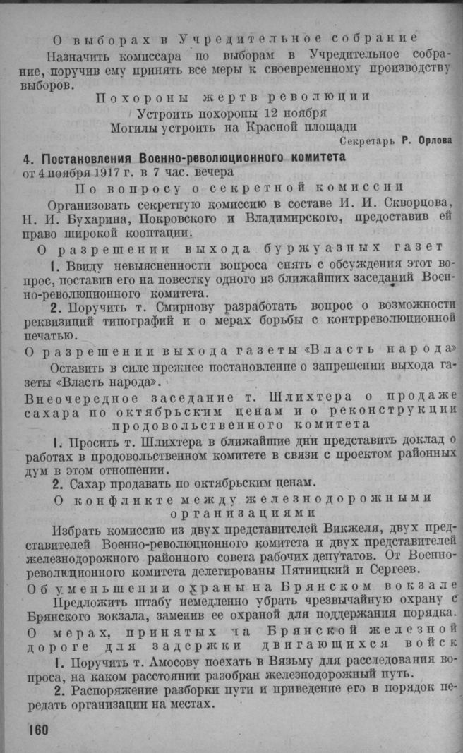 Постановления Военно-революционного комитета от 4 ноября 1917 г. в 7 час. вечера