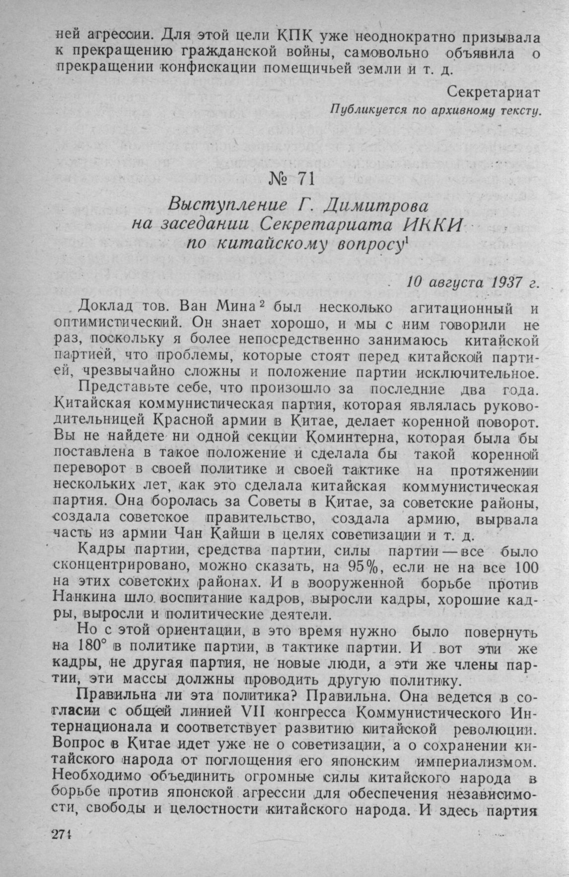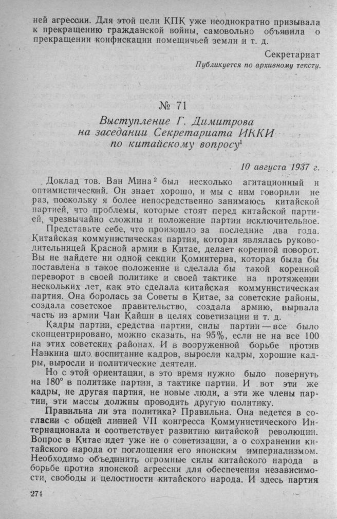 Выступление Г. Димитрова на заседании Секретариата ИККИ по китайскому вопросу. 10 августа 1937 г.