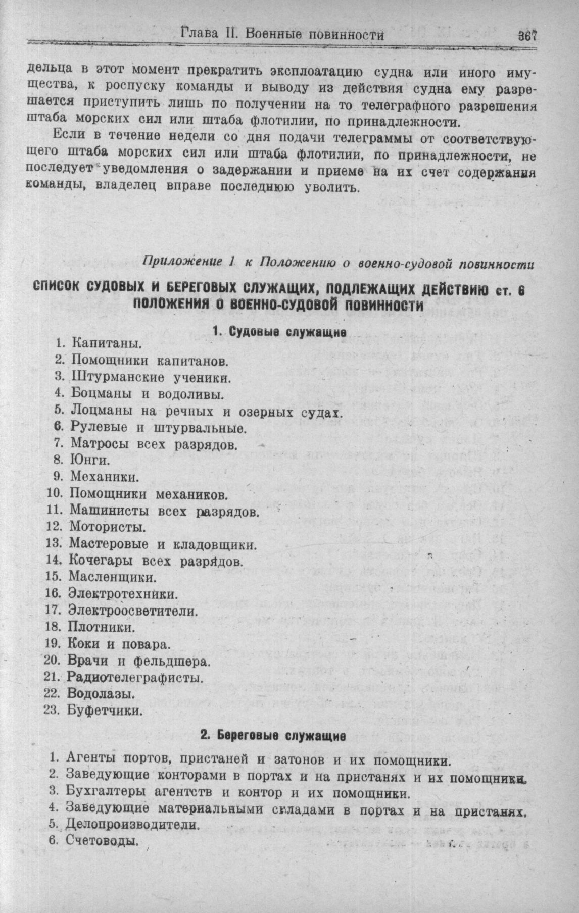 Список судовых и береговых служащих, подлежащих действию ст. 6 поло...