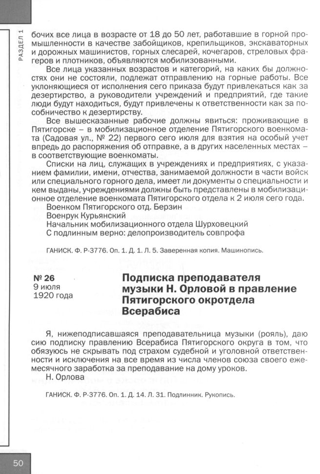 Подписка преподавателя музыки Н. Орловой в правление Пятигорского окротдела Всерабиса. 9 июля 1920 года