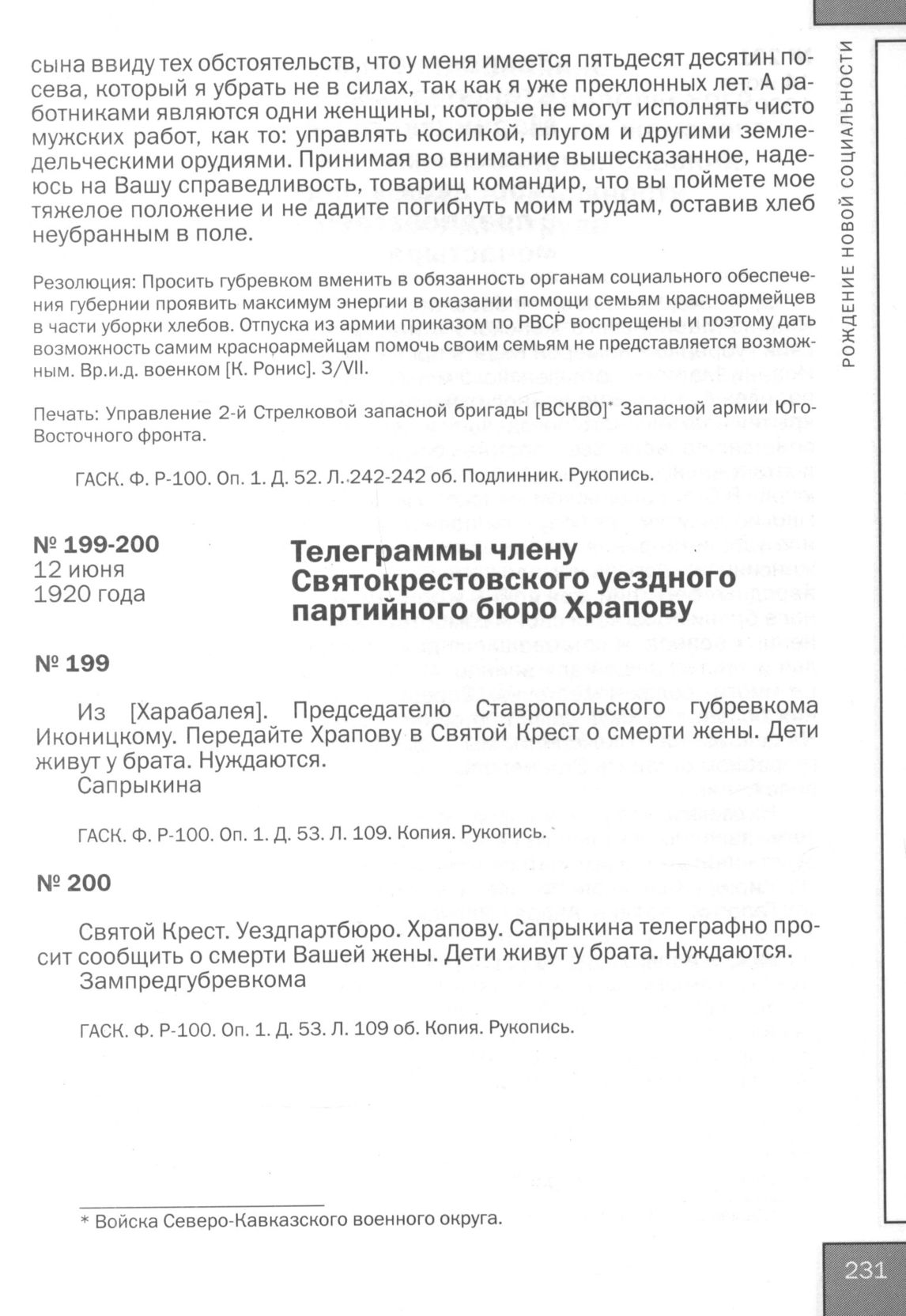 Голоса из провинции: Жители Ставрополья в 1917-1929 годах: Сб. док. — Ставрополь, 2009.
