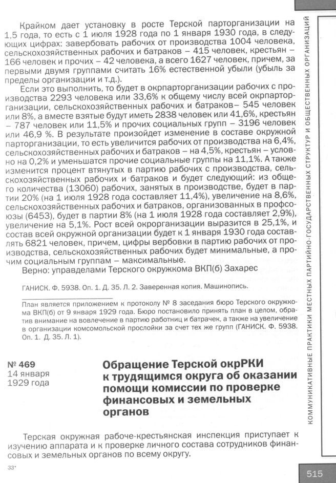 Обращение Терской окрРКИ к трудящимся округа об оказании помощи комиссии по проверке финансовых и земельных органов. 14 января 1929 года