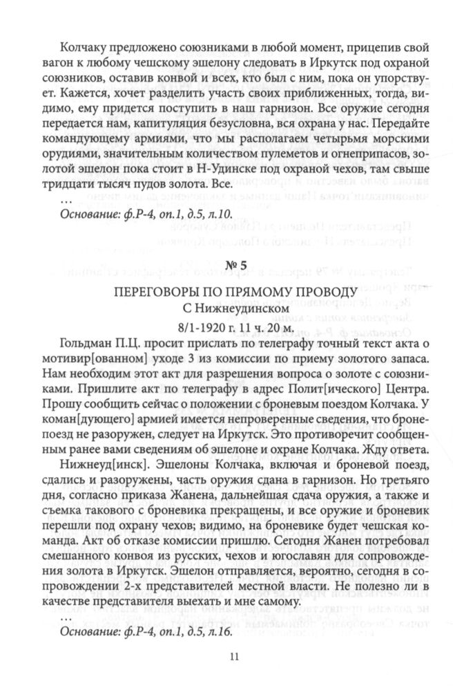 Запись переговоров по прямому проводу члена Политического Центра П.Ц. Гольдмана с Нижнеудинском 08.01.1920 г.