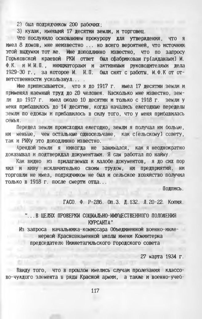 «...В целях проверки социально-имущественного положения курсанта». Из запроса начальника-комиссара Объединенной военно-инженерной Краснознаменной школы имени Коминтерна председателю Нижнетагильского городского совета. 27 марта 1934 г.