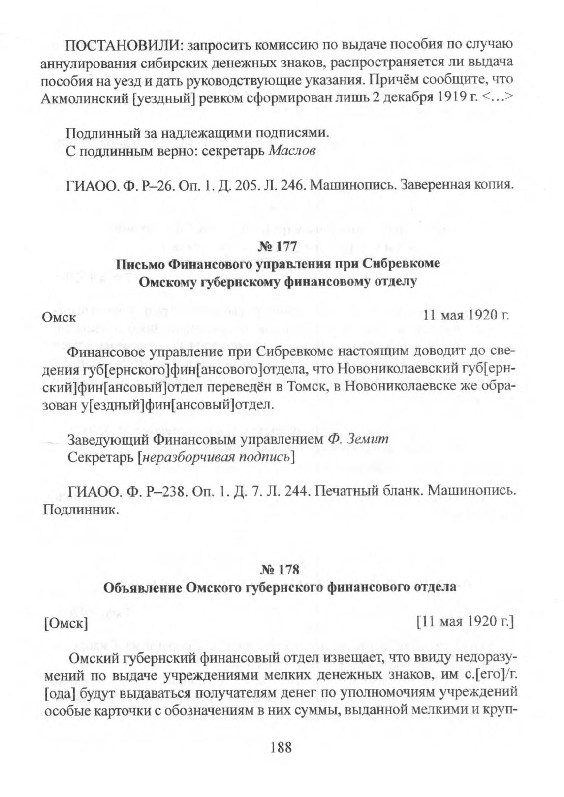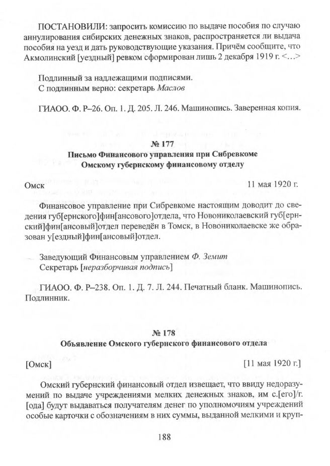 Финансовая политика и денежное обращение в Сибири. 1917-1920. Документы Исторического архива Омской области : Сб. документов. — Омск: ООО «Амфора», 2014.