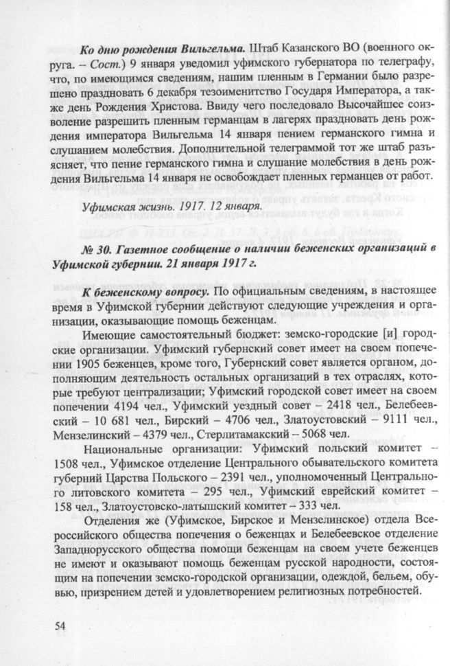 Газетное сообщение о наличии беженских организаций в Уфимской губернии. 21 января 1917 г. // Уфимский Вестник. 1917. 21 января.