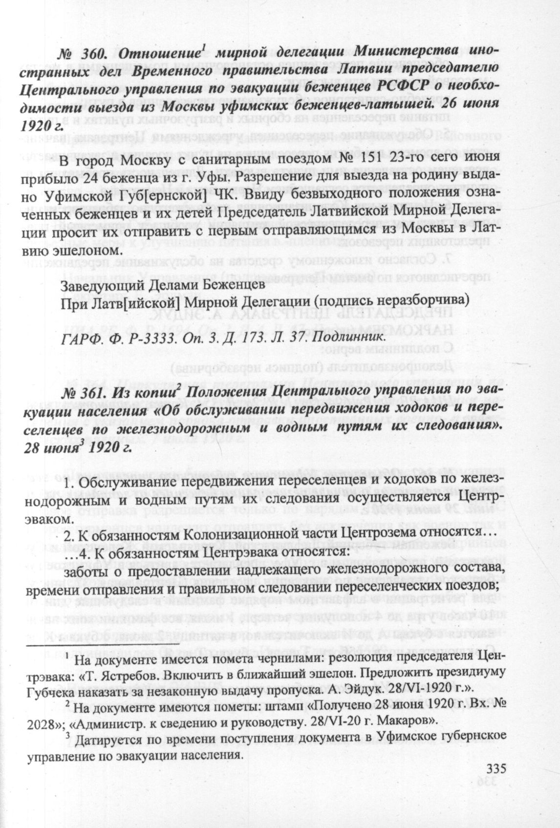 Отношение мирной делегации Министерства иностранных дел Временного правительства Латвии председателю Центрального управления по эвакуации беженцев РСФСР о необходимости выезда из Москвы уфимских беженцев-латышей. 26 июня 1920 г. // ГАРФ. Ф. P-3333. Oп. 3. Д. 173. Л. 37. Подлинник.
