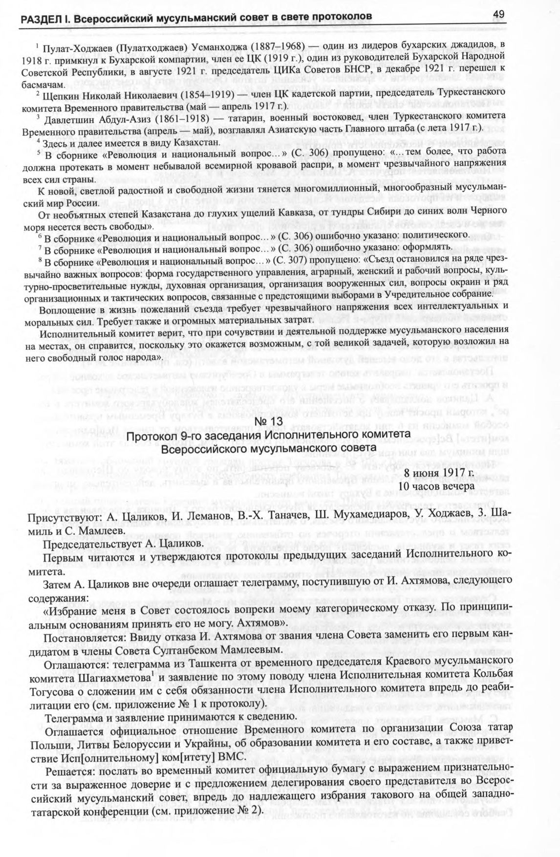 Протокол 10-го заседания Исполнительного комитета Всероссийского мусульманского совета. 8 июня 1917 г. // Известия Всероссийского мусульманского совета. 1917. 7 июля.