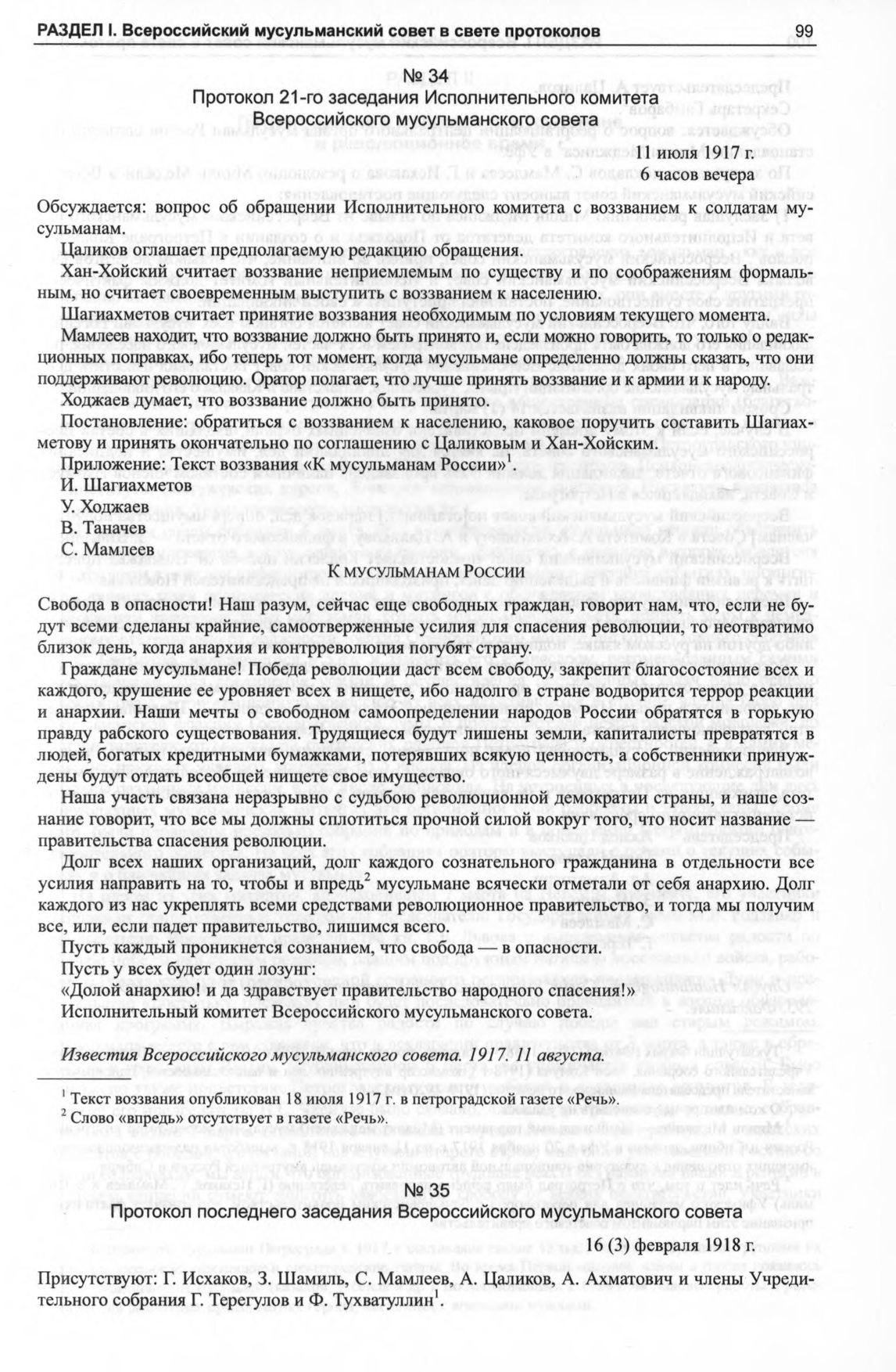 Протокол последнего заседания Всероссийского мусульманского совета. 16 (3) февраля 1918 г. // Hablimitogly N. Qarhk Rusyasi’nda Turk Kongreleri (1905-1917). Ankara, 1997. S. 294- 295. Факсимиле.